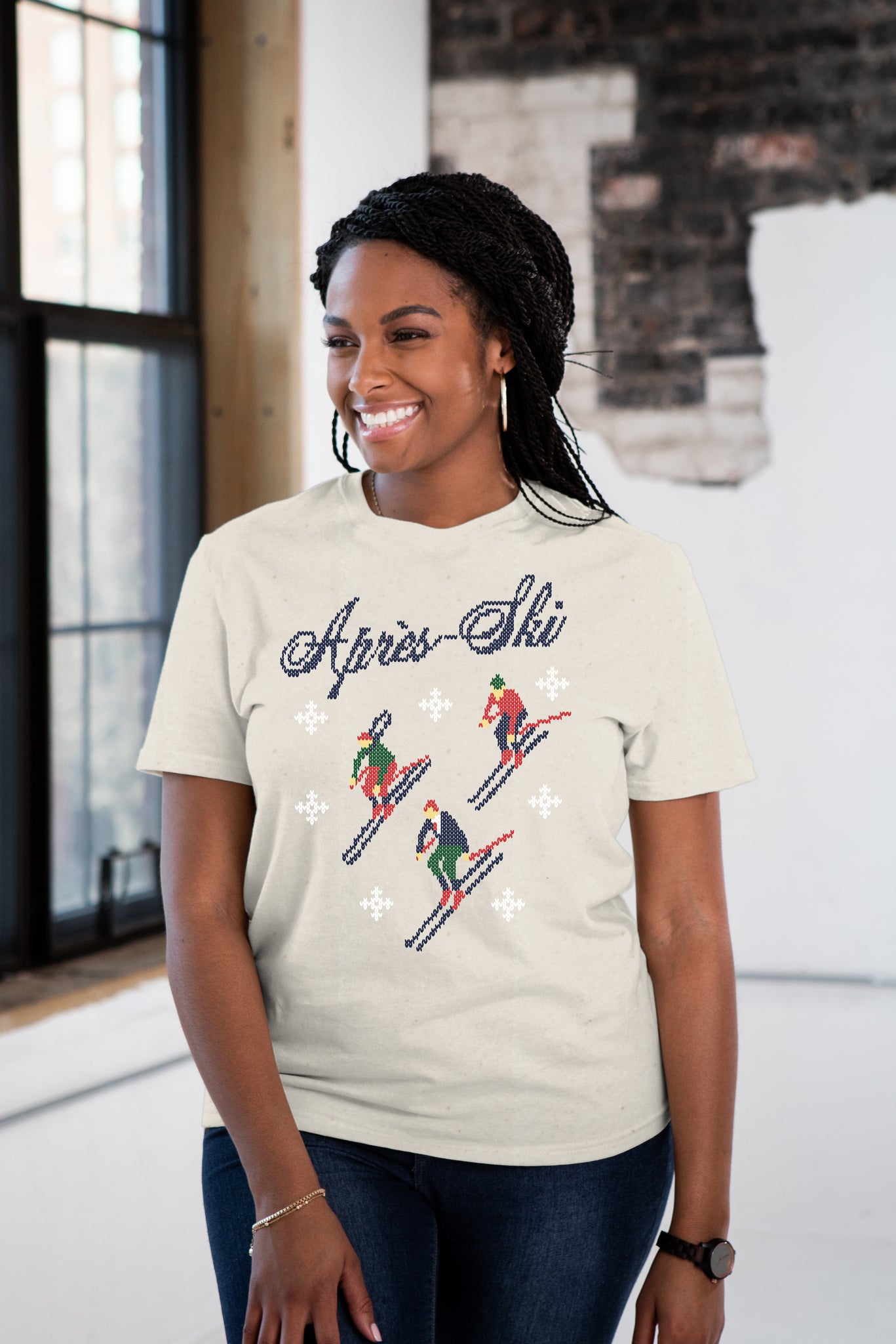 Bring mountain vibes wherever you go with this playful Après-Ski graphic tee. Featuring a retro-inspired skier design and snowflake details, this soft unisex shirt captures the fun and chill of post-slope style. Perfect for cozy winter weekends or casual everyday wear.